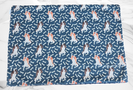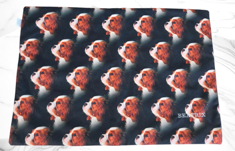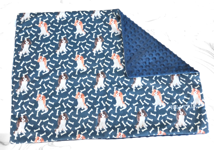 Modell 10 "Cavalier blenheim, tricolour - blau" 69cm x 49cm Wellnessfleece & Minkifleece gefüttert Preis: 20,-€ verfügbar: 1 Stück