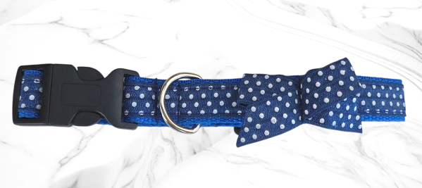 "Pünktchen mit Schleife" 20mm breit verstellbar von 28cm - 41cm Gurtband blau / Verschluß aus Kunststoff Preis: 12,-€ verfügbar: 1 Stück